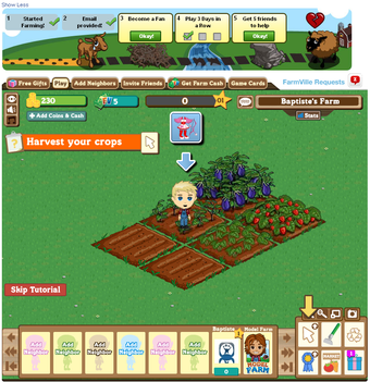 Farmville est un jeu pour Facebook développé en Flash. Le héros est un jeune fermier dont le but est d'engranger des "Farm Coins" grâce à la vente de ses récoltes.